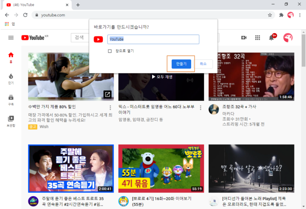유튜브 바로 가기, 바탕화면 아이콘 만들기